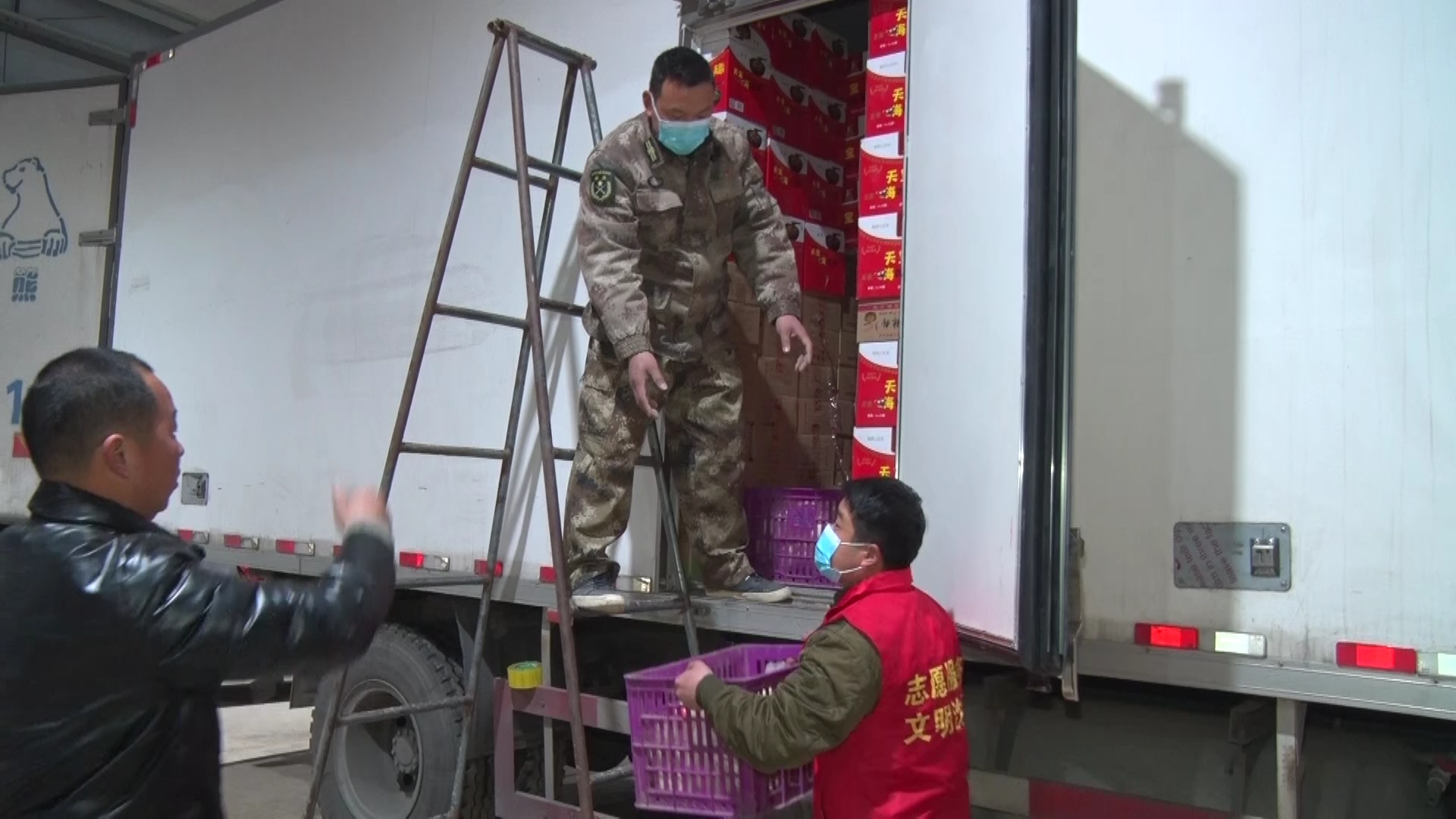 王國輝說:“咱們對接的就是河北南宮市,但是南宮市的工作人員考慮到咱們的安全,也不讓咱們進入南宮的地域,而是去衡水,衡水是低風(fēng)險,現(xiàn)在不在風(fēng)險區(qū),這是對方為我們著想。我們把貨到了衡水的外圍一個指定的開闊地方,我們把貨卸下來,我們撤離,然后南宮的同志再過來,轉(zhuǎn)運到他們車上去?!?/p>