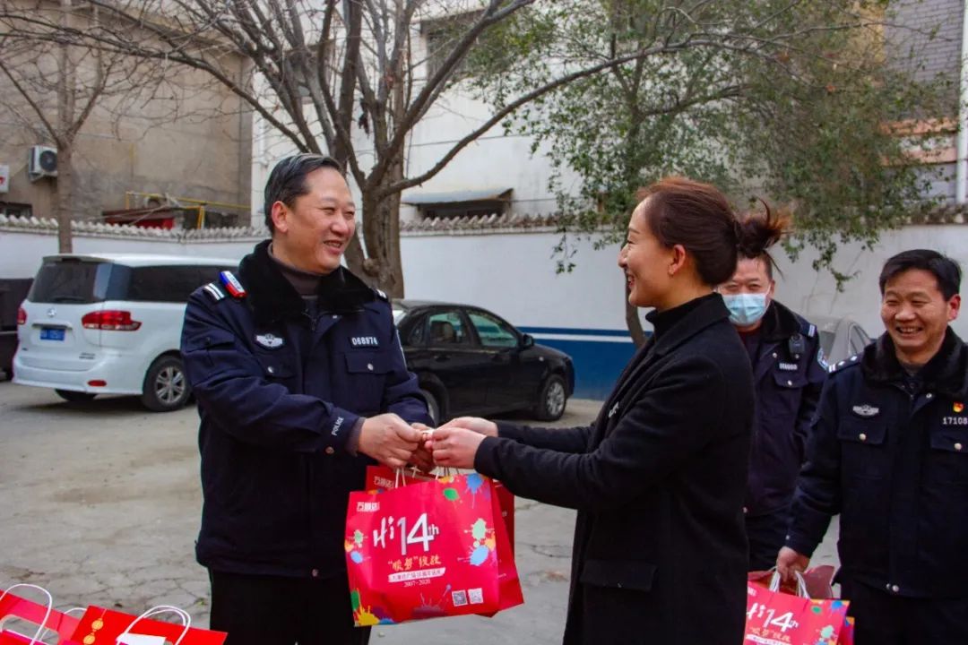 站好城市第一班崗的還有公安民警,為了城市的平安,公安民警常常值守夜班。萬(wàn)順達(dá)廣場(chǎng)當(dāng)天為周口市公安局川匯分局陳州派出所的民警們送上了臘八祝福,提醒他們?cè)谑刈o(hù)市民平安的同時(shí),也別忘了關(guān)心自己。
