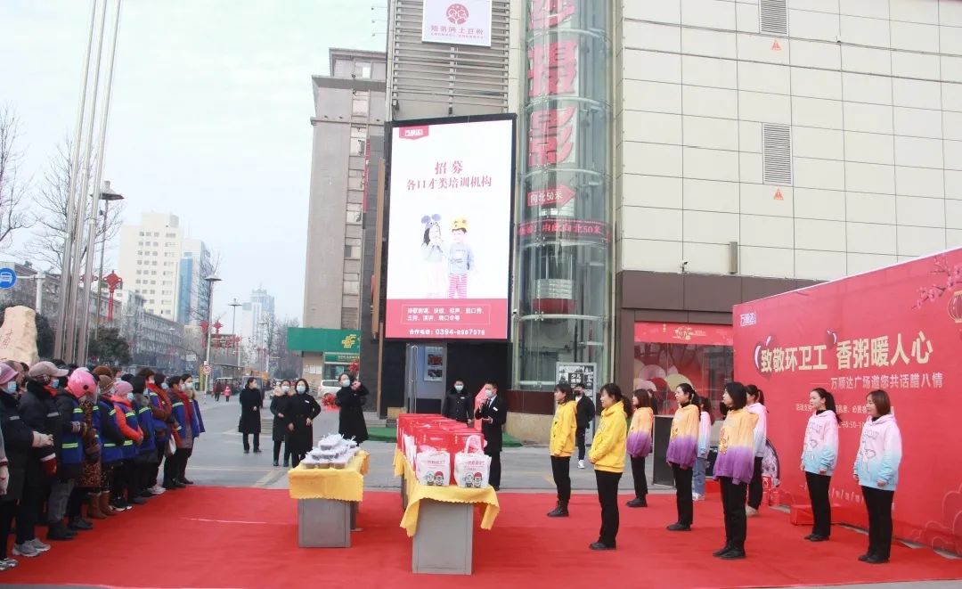 本次活動(dòng)的主題是“一碗臘八粥,溫暖一座城”。當(dāng)忙碌一陣后的環(huán)衛(wèi)工人來到萬(wàn)順達(dá)廣場(chǎng)門前時(shí),萬(wàn)順達(dá)廣場(chǎng)的工作人員一曲《好運(yùn)來》和《你笑起來真好看》,讓整日忙碌的做著重復(fù)而又枯燥工作的環(huán)衛(wèi)工人們臉上笑開了花。