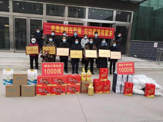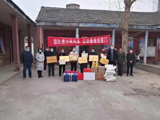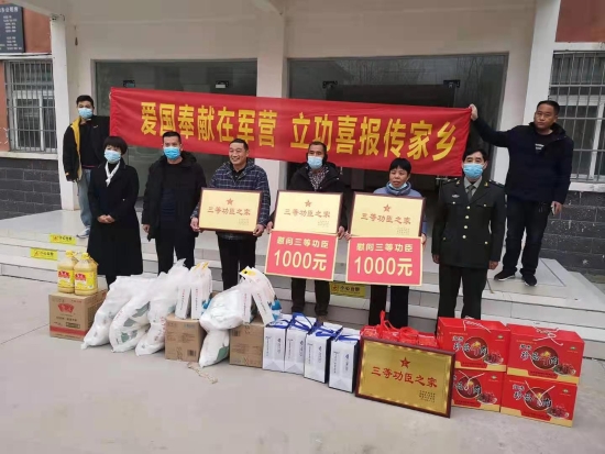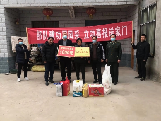 一人受獎,全家光榮;一人立功,全社會褒獎。1月21日,鄲城縣人武部和縣退役軍人事務局為全縣榮立二等功、三等功的軍人家庭送去立功喜報、慰問金和慰問品,向廣大軍人、軍屬送去黨和政府的溫暖和慰問,讓軍人軍屬共享立功受獎的榮耀和喜悅。