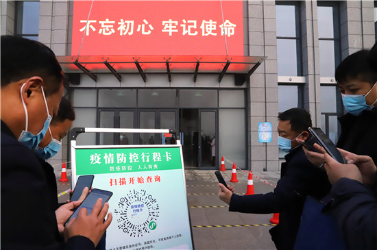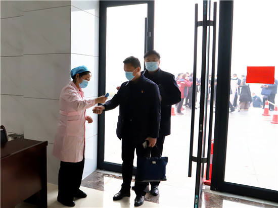 在會(huì)場(chǎng)之外,該縣疫情防控指揮部設(shè)立多重保障守護(hù)大會(huì)安全。在疫情防控常態(tài)化所有人員必須戴口罩的情況下,首先通過(guò)第一重保障,即通過(guò)手機(jī)掃描“通信大數(shù)據(jù)行程卡”,呈“綠碼”方可走向會(huì)場(chǎng)大門;進(jìn)入會(huì)場(chǎng)大門時(shí),排隊(duì)進(jìn)行體溫監(jiān)測(cè),體溫顯示正常方可進(jìn)入。與此同時(shí),會(huì)場(chǎng)座位按照隔位入座的形式,保障人與人之間的距離超過(guò)50厘米。在多重保障的守護(hù)下,確保大會(huì)順利安全舉行。③5