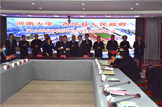 盧克平指出,西華歷史悠久,底蘊(yùn)厚重,更是盤古女媧創(chuàng)世文化圣地,經(jīng)過前期的磋商和考察,感受到了西華縣委、縣政府領(lǐng)導(dǎo)班子的開放包容和西華經(jīng)濟(jì)社會(huì)發(fā)展的大格局、大氣魄、大成就,感受到西華縣委縣政府重視教育教學(xué)的大決心和大發(fā)展。河南大學(xué)愿意在此次合作基礎(chǔ)上,與西華牽手,在基礎(chǔ)教育方面共同努力,共同推動(dòng)周口經(jīng)濟(jì)社會(huì)發(fā)展。相信經(jīng)過雙方共同努力,河南大學(xué)附屬西華中學(xué)一定會(huì)辦出特色辦出水平。