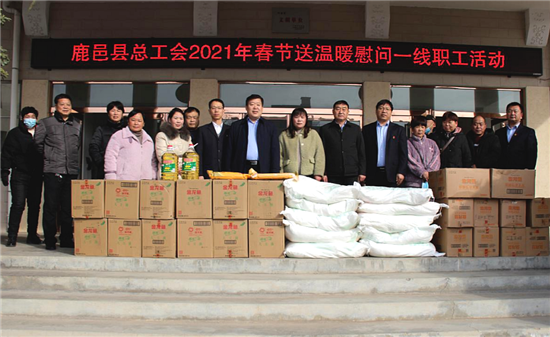 2月1日, 鹿邑縣總工會組織開展“冬送溫暖”慰問活動??h人大常委會副主任、縣總工會主席王新民,縣總工會黨組書記、常務副主席武超參加活動,全體班子成員陪同慰問。