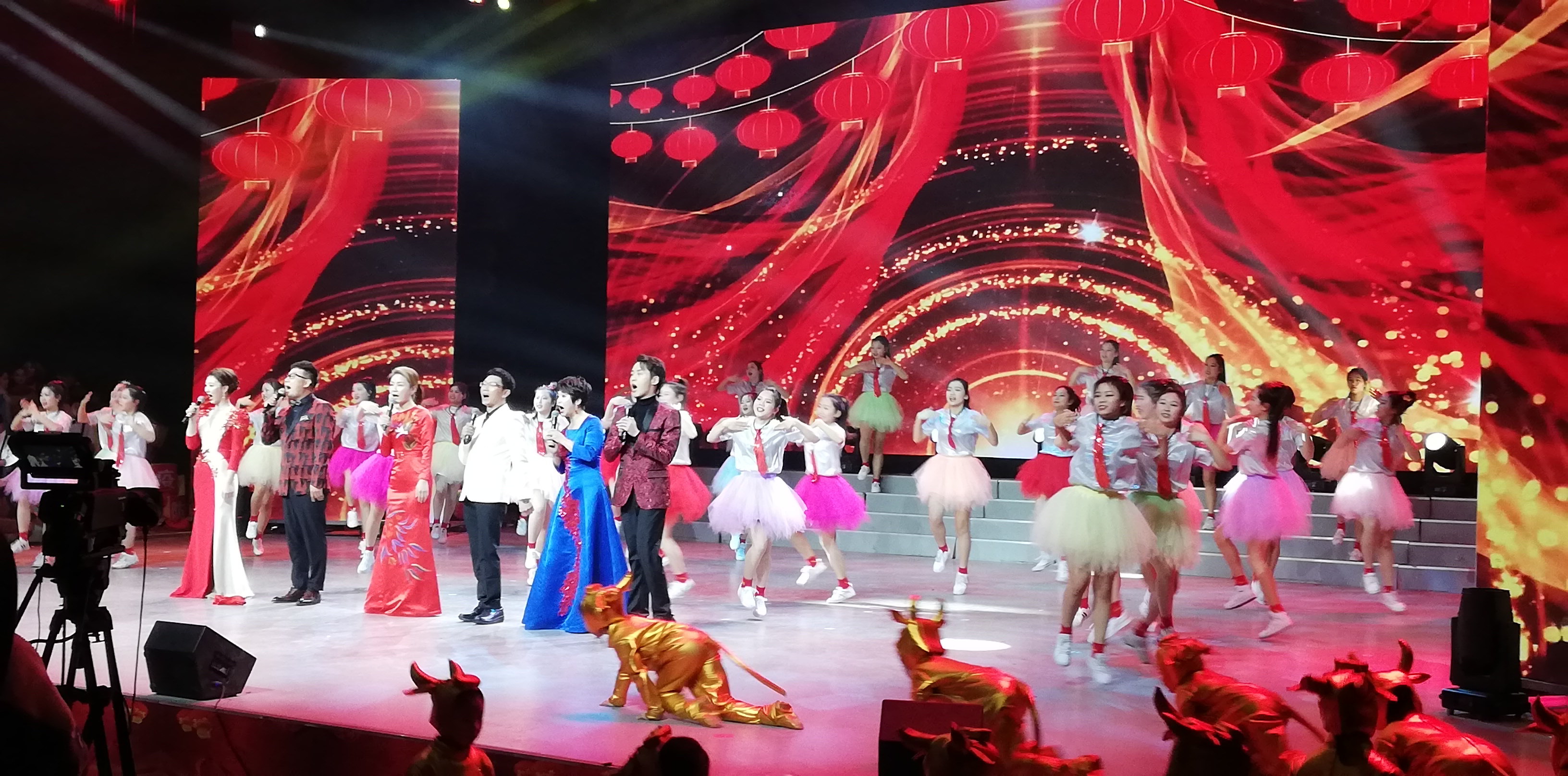 當晚,彩排現場氣氛歡樂,吸引了眾多市民到場觀看。晚會彩排在開場歌舞《金牛賀歲》中拉開序幕。整臺晚會舞美設計絢麗,節(jié)目編排新穎。10多個節(jié)目貼近實際、貼近生活、貼近群眾,有提振士氣、鼓舞人心的歌朗誦《我自豪 我是周口人》,有歡樂喜慶的歌曲聯唱《在希望的田野上》、《春天的故事》、《我和你》,有名段聯唱《梨園新聲》,有令人驚嘆的雜技《動物樂園.新春大聯歡》。