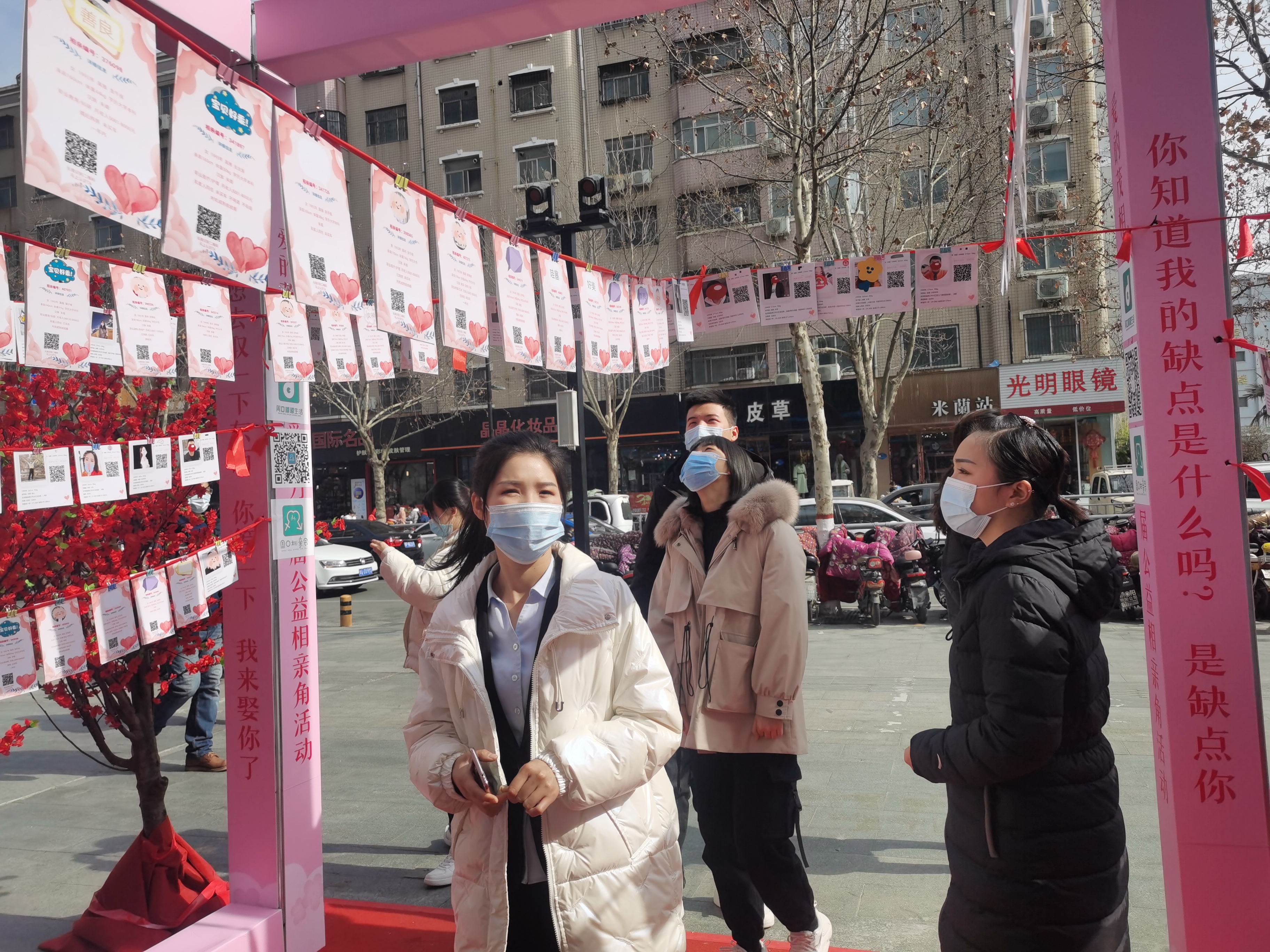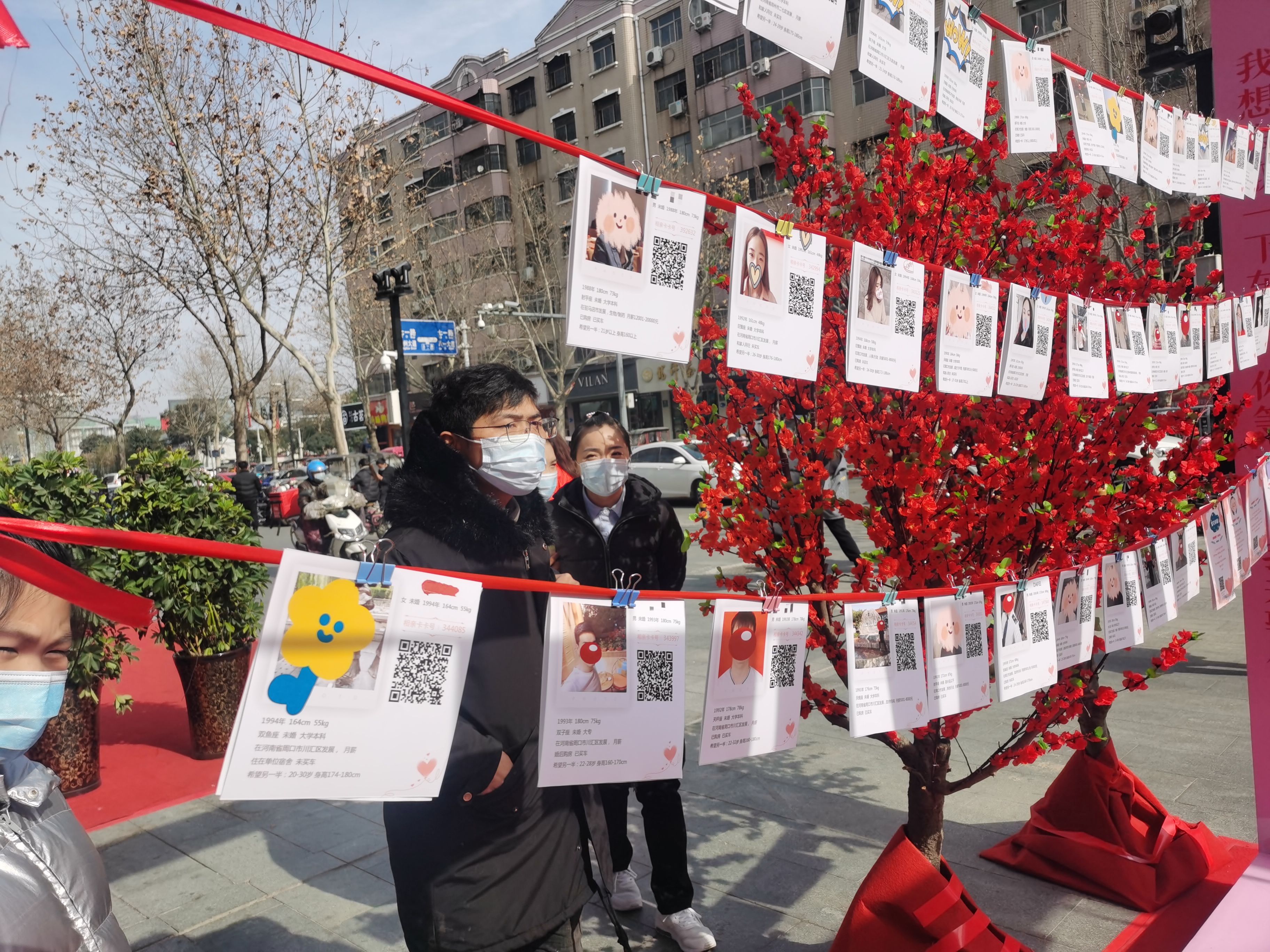 2月6日,不少市民在位于五一路與七一路交叉口的愛的茂商場門口的相親角駐足觀看,了解情況。