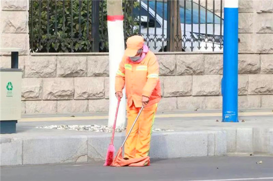 由于新冠肺炎疫情的原因,這個(gè)春節(jié)不同往常,環(huán)衛(wèi)工人們在搞好環(huán)衛(wèi)工作的同時(shí),還要注意好疫情防控。當(dāng)日上午,記者看到,每一名環(huán)衛(wèi)工人不僅全時(shí)段佩戴口罩,也會時(shí)常提醒路人戴好口罩,注意安全。