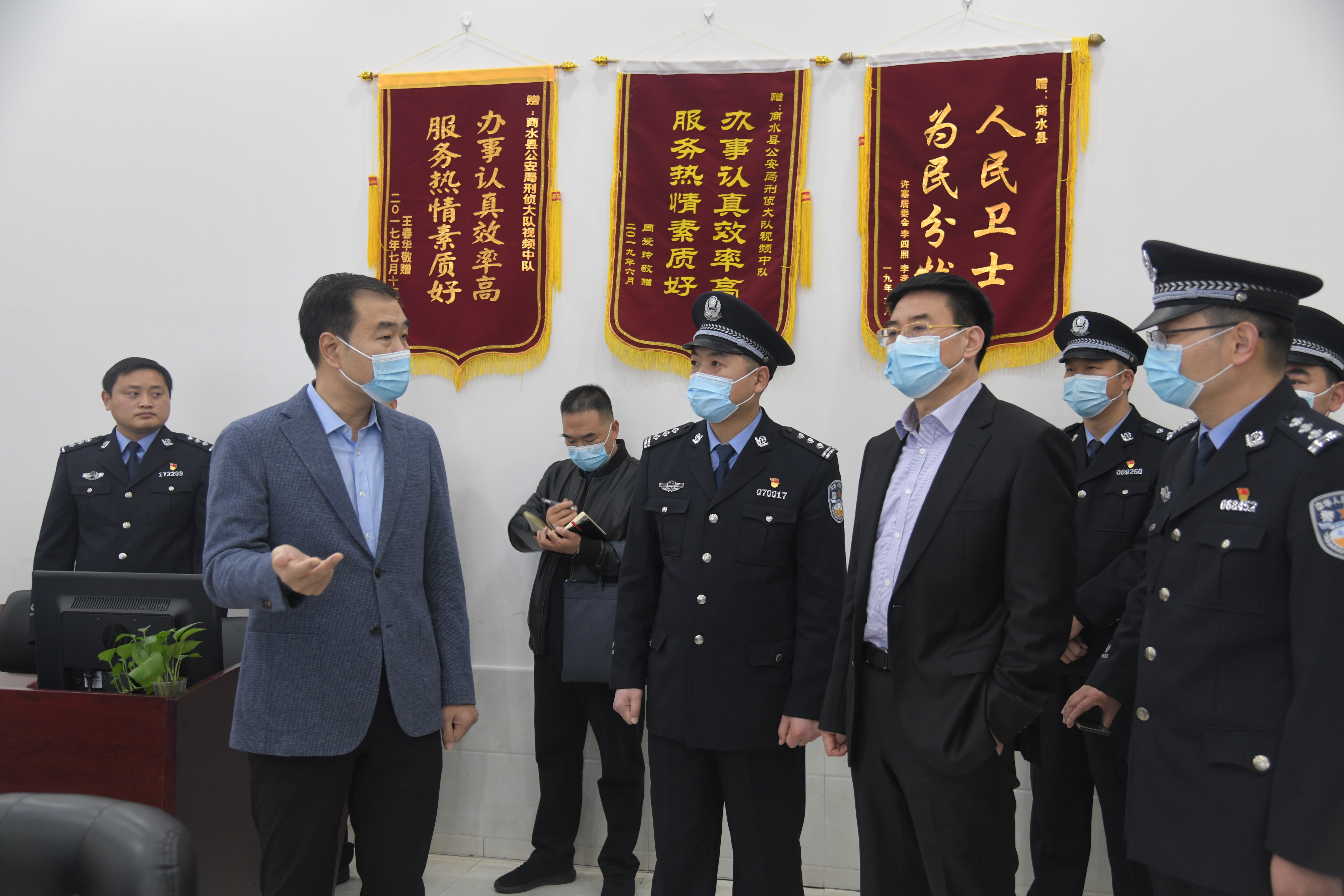 在縣公安局,孔陽(yáng)、田林與備勤人員一一握手,親切交談??钻?yáng)一行還到公安局110指揮中心和合成作戰(zhàn)中心,看望值班人員,對(duì)縣公安局新黨委班子成立以來(lái)取得的成績(jī)給予充分肯定。他指出,越是在萬(wàn)家團(tuán)圓的時(shí)候,維護(hù)社會(huì)穩(wěn)定的任務(wù)就越重,希望堅(jiān)守在一線的工作人員繼續(xù)發(fā)揚(yáng)良好的作風(fēng),堅(jiān)守崗位,確保全縣人民過(guò)一個(gè)平安祥和安全的春節(jié)。