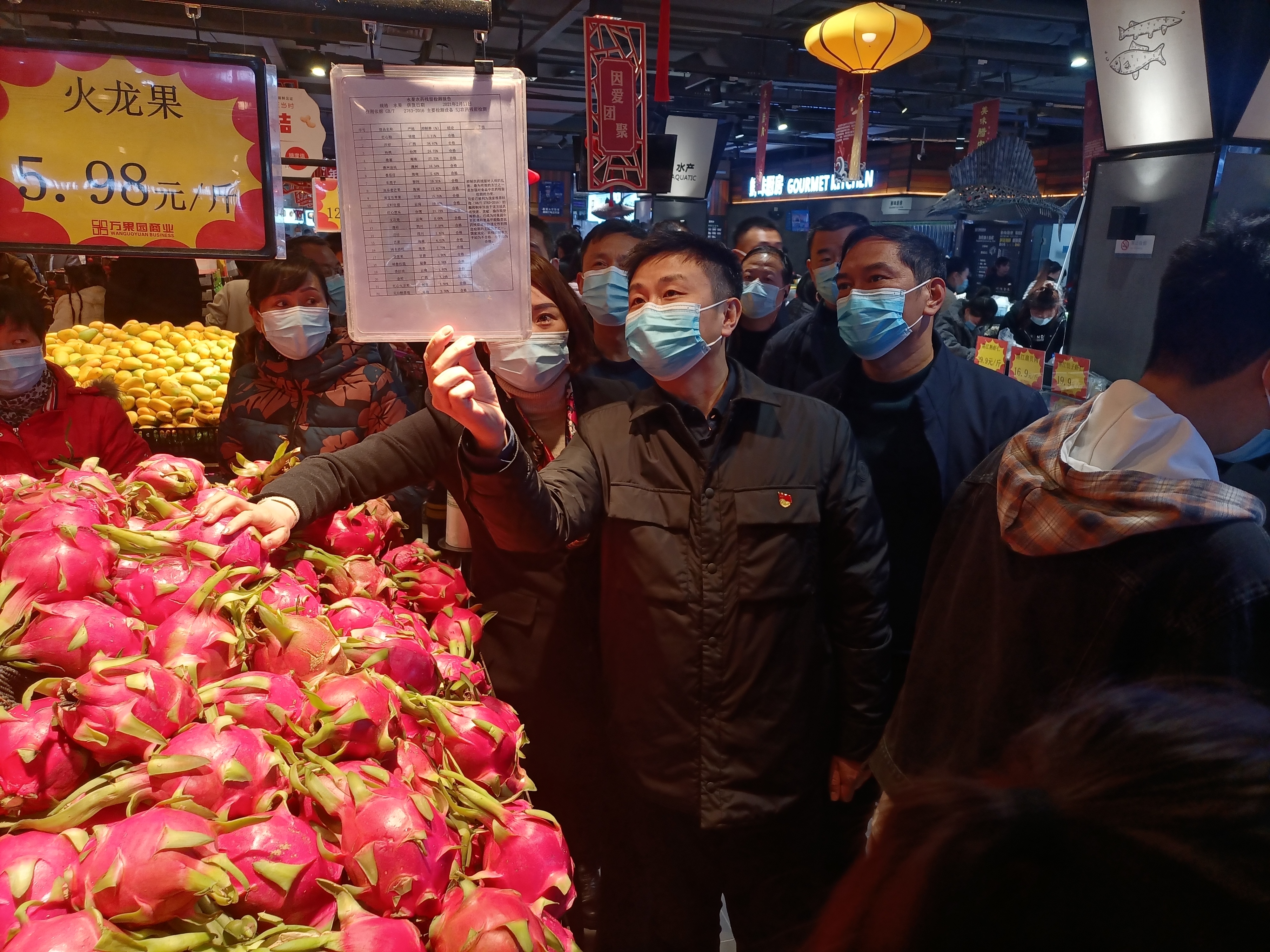 李湛一行還走進萬果園量販五一廣場店,詳細了解疫情防控、安全管理、市場經(jīng)營及供應(yīng)情況。他指出,要統(tǒng)籌做好疫情防控、安全生產(chǎn)和市場供應(yīng)工作,嚴把進貨關(guān)囗,保障節(jié)日供應(yīng),全力保證消防安全,有效遏制各類安全事故的發(fā)生,讓群眾放心、安全購物消費。