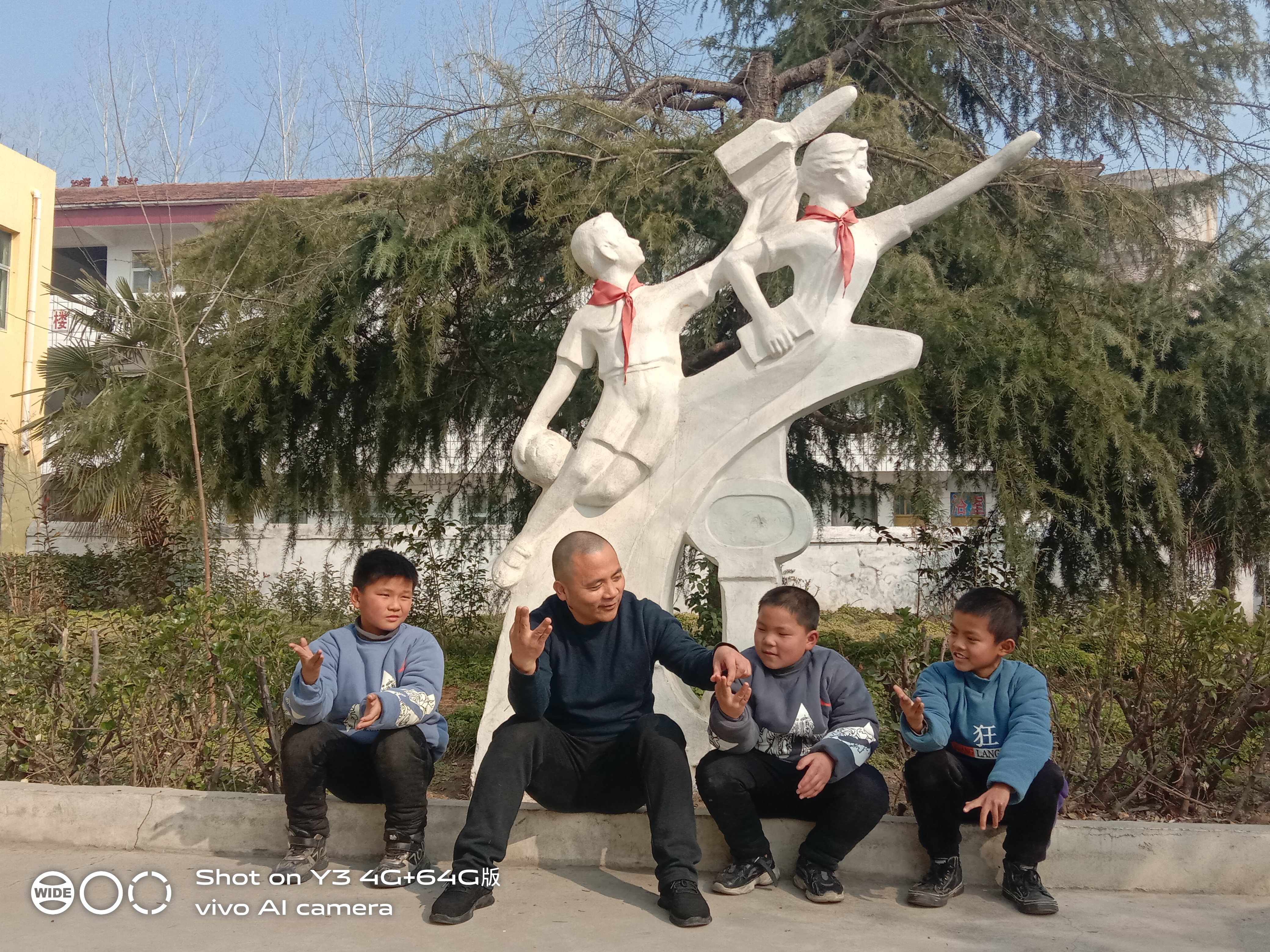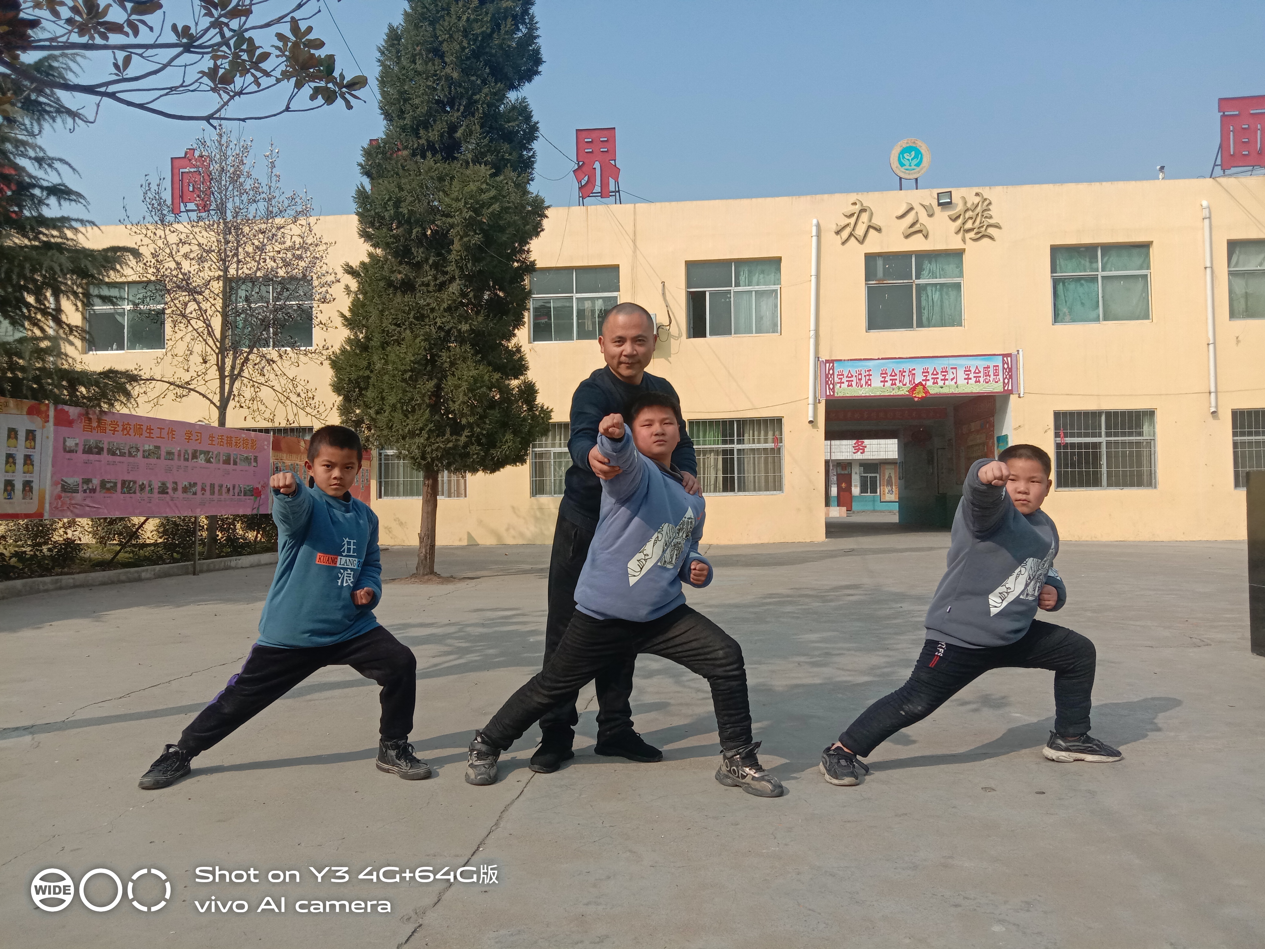 當(dāng)天,接受周口“最美農(nóng)民工校長(zhǎng)”馬剛資助多年的5個(gè)孩子再次回到項(xiàng)城市官會(huì)鎮(zhèn)昌福學(xué)校?!榜R爸爸”和孩子們一起拜孔子、習(xí)武、玩耍、談心,吃午餐,還為親手孩子們換上新衣服。