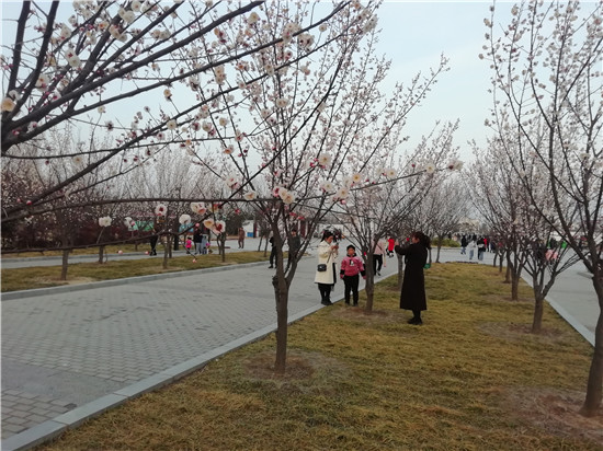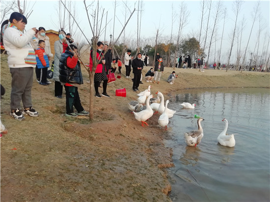 春節(jié)期間,陽(yáng)光燦爛,眾多市民呼朋引伴選擇近郊游。新落成的淮陽(yáng)梅園每天迎來(lái)成群結(jié)隊(duì)的市民。這里臘梅等花樹(shù)次第開(kāi)放,湖水澄清,大白鵝引頸高歌,還有精致的木質(zhì)棧橋等,一步一景,成為人們休閑游玩的好去處。記者 侯俊豫 攝