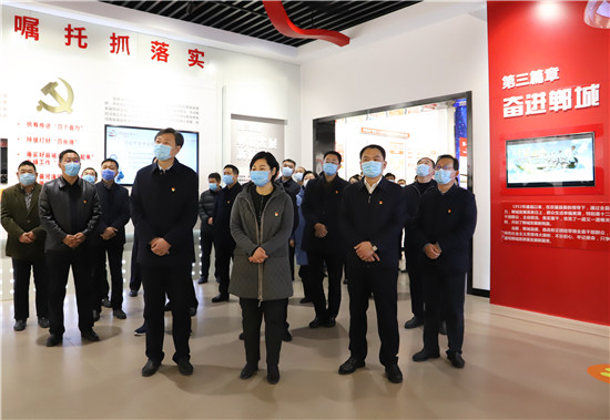 2月18日,新年上班第一天,市人大常委會副主任、鄲城縣委書記羅文閣,縣委副書記、縣長李全林帶領(lǐng)縣四個班子領(lǐng)導(dǎo)和部分縣直單位黨員干部,開展中共黨史學(xué)習(xí)教育活動,激勵全縣各級黨員干部不忘初心、牢記使命,在新時代不斷加強(qiáng)黨的建設(shè),更加緊密地團(tuán)結(jié)在以習(xí)近平同志為核心的黨中央周圍,始終保持永不懈怠的精神狀態(tài)和一往無前的奮斗姿態(tài),振奮精神,堅(jiān)定信心,銳意進(jìn)取,真抓實(shí)干,奮力譜寫全面建設(shè)社會主義現(xiàn)代化鄲城新篇章,以優(yōu)異成績迎接建黨100周年。