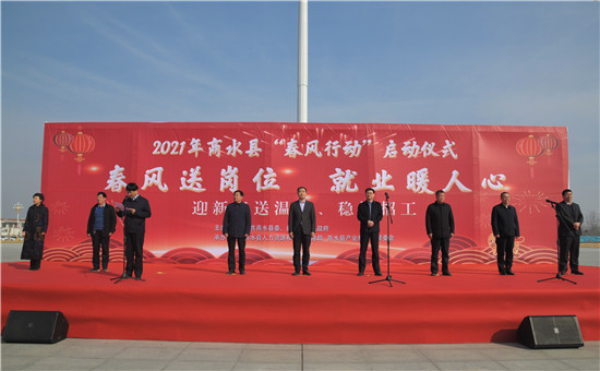 春風(fēng)送崗位,就業(yè)暖人心。春節(jié)假期剛過,2月18日,商水縣舉行2021年“春風(fēng)行動”啟動儀式暨企業(yè)春季用工招聘會,為企業(yè)和求職者搭建一個雙向溝通交流的平臺,讓用人單位挑選到適合企業(yè)發(fā)展的人才,也讓求職者在家門口找到適合自己的就業(yè)崗位??h委書記孔陽,縣長田林,縣人大常委會主任李德來,縣政協(xié)主席孫培忠,副縣長朱高建,縣政協(xié)副主席、工商聯(lián)主席彭發(fā)光,縣工會主席盧紅兵,縣集聚區(qū)管委會主任馬三華等出席啟動儀式。啟動儀式由朱高建主持。