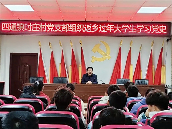 在當(dāng)日活動中,該村黨支部書記時興榮帶領(lǐng)返鄉(xiāng)大學(xué)生參觀時莊村中共黨史館,并為他們現(xiàn)場講解中國共產(chǎn)黨從一大到十九大的黨史歷程,隨后他們又一起前往時莊黨校進(jìn)行學(xué)習(xí)?!爸拔覀儧]有學(xué)過黨史,也不太了解黨史,通過今天這一課,我們才真正了解到我黨的發(fā)展歷史。作為新時代的大學(xué)生,學(xué)業(yè)有成后,我們一定要報效祖國,一定要不忘初心、牢記使命,為中華民族的復(fù)興努力奮斗作出貢獻(xiàn),堅決做到聽黨話、跟黨走、報黨恩?!眳⒓踊顒拥拇髮W(xué)生時曼銀說。