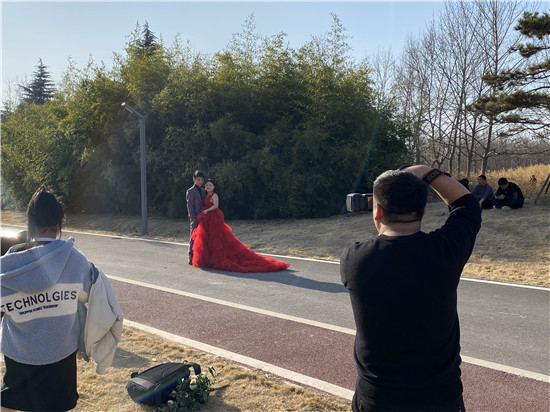 優(yōu)美的景色不是市民享受春光的好去處,也是拍攝婚紗照的好地方?!袄掀趴坷瞎稽c(diǎn)、再近一點(diǎn),微笑、嗯不錯(cuò)?!币粚?duì)新人正在拍婚紗照,紅色的婚紗與自然的風(fēng)景融在一起,盡顯新娘的美麗。在植物園里,拍一組森系風(fēng)格的婚紗照很是漂亮,春風(fēng)將“調(diào)色板”打翻,一對(duì)新人的甜蜜愛(ài)情就這樣被定格在這春天里。