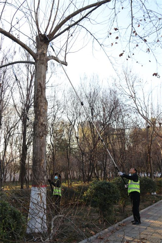 2月21日,城鄉(xiāng)一體化示范區(qū)城管局幾名市政管理人員在修剪周口大道兩旁的行道樹。據(jù)了解,通過一年的生長,行道樹衍生了許多無用枝條,如果對這些無用枝條不進行修剪,勢必影響今年的長勢。目前,道路兩邊的行道樹開始發(fā)芽,正是一年當中修剪的有利時機。城鄉(xiāng)一體化示范區(qū)城管局每天出動三班技術人員,對轄區(qū)內的行道樹進行修剪。