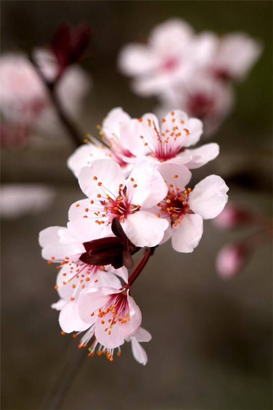 滿樹芳菲紅葉李,疏枝密蕾遍流霞。
