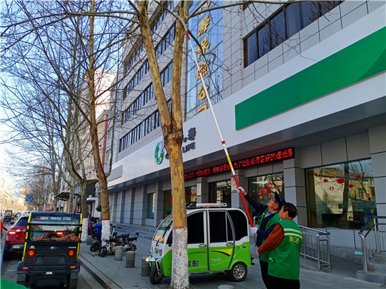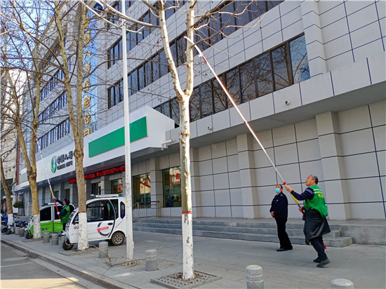 3月4日下午,在中心城區(qū)人民路上,園林工人正在對道路邊的綠化樹進行修剪,讓樹木保持良好的形狀和長勢。周口日報·周道客戶端記者 張洪濤 攝