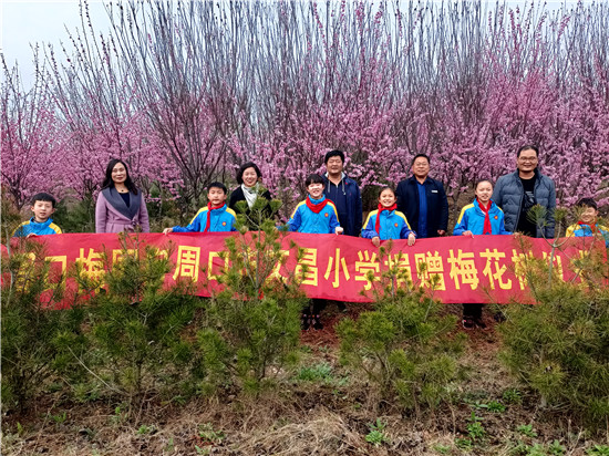 “謝謝!謝謝!不久的將來,這些梅樹將成為學校里面一道亮麗的風景?!?月11日,周口市文昌小學校長朱剛偉看著花滿枝頭的梅樹高興地說道。當日,周口梅園經(jīng)理李萌將精心培育的一百棵價值不菲的朱砂梅、美人梅等梅樹無償捐給了周口市文昌小學。