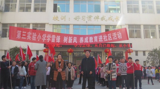 第三實驗小學(xué)開展“學(xué)雷鋒”進社區(qū)活動,讓孩子親身體驗如何處理垃圾、愛護花草的活動。使雷鋒精神深入到每個班級,激發(fā)學(xué)生養(yǎng)成好習(xí)慣意識。讓小學(xué)生在行為上倡導(dǎo)學(xué)雷鋒精神,使雷鋒精神得以代代相傳和弘揚。