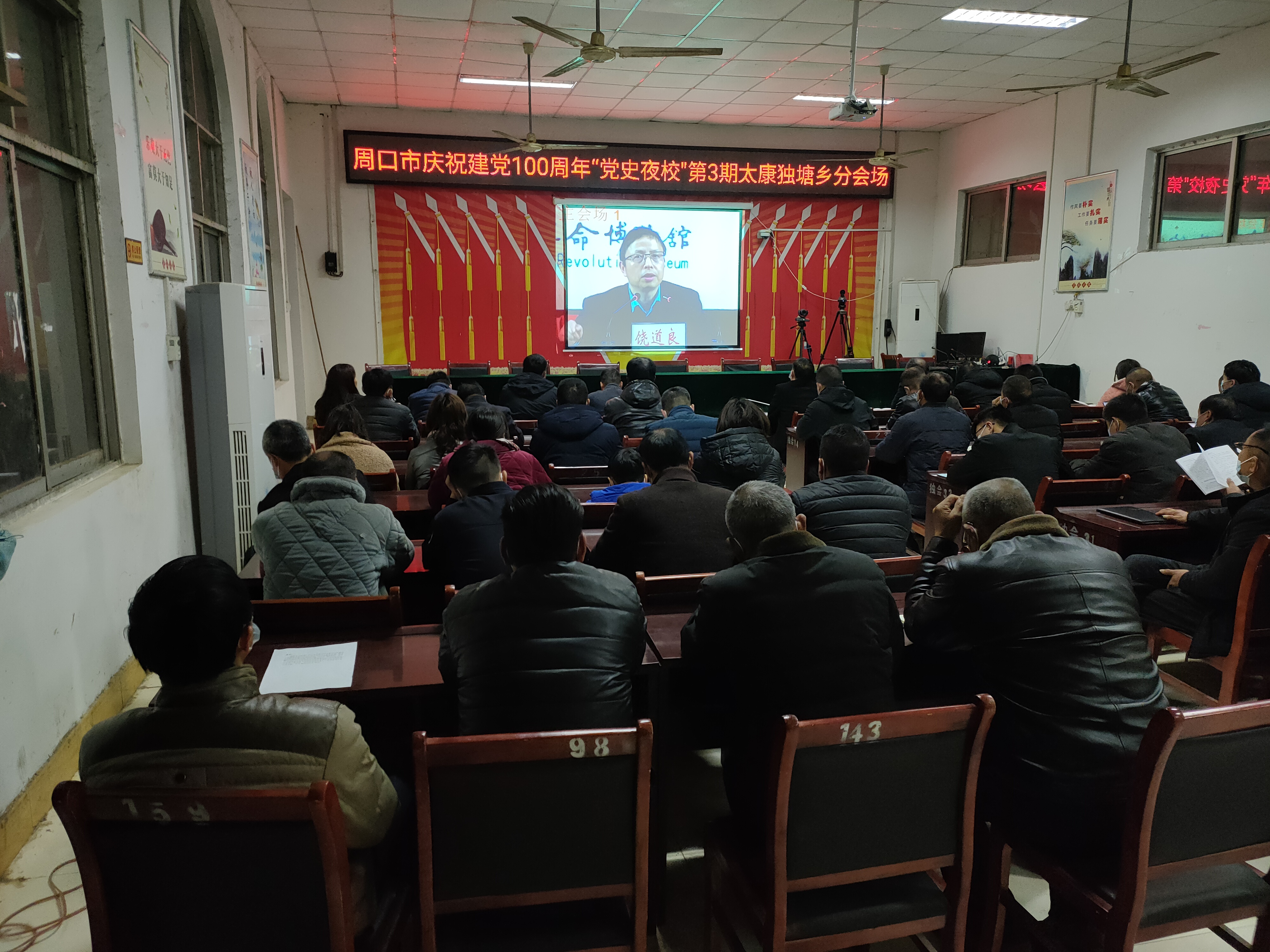 3月18日晚,周口市舉辦慶祝中國共產(chǎn)黨成立100周年“黨史夜校”第三期專題講座。太康縣獨塘鄉(xiāng)組織鄉(xiāng)領(lǐng)導(dǎo)班子、鄉(xiāng)政府機(jī)關(guān)黨支部全體黨員、34個行政村支部書記、鄉(xiāng)直機(jī)關(guān)負(fù)責(zé)人、各行政村全體黨員、兩委干部在鄉(xiāng)政府會議室和各行政村分會場收聽收看。