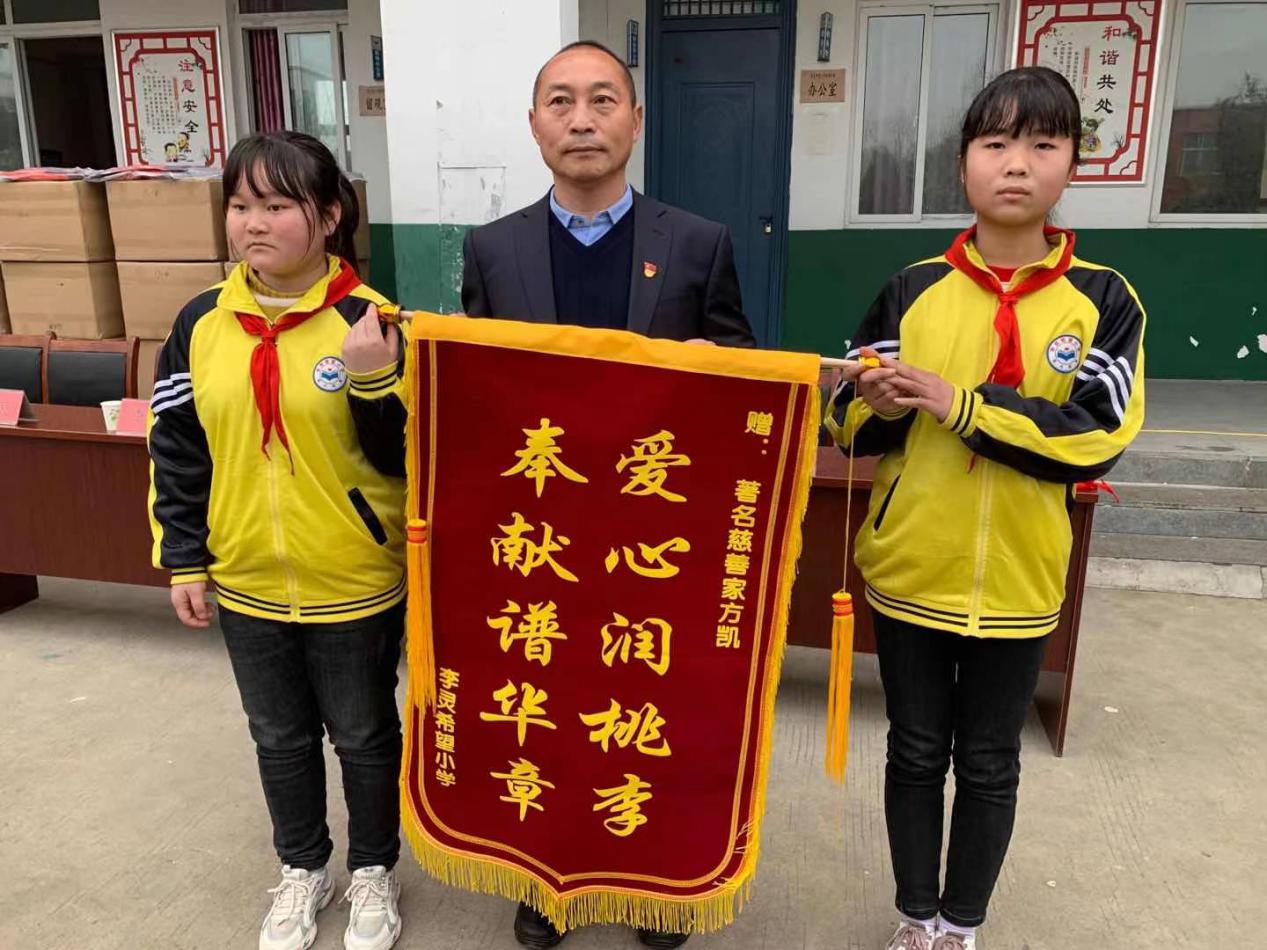 方凱說,自己在取得成功以后,始終沒有忘記社會(huì)上的弱勢(shì)群體,沒有忘記留守兒童,沒有忘記孤寡老人,堅(jiān)持捐款捐物幫助他們渡過難關(guān)。10多年來,累計(jì)捐款捐物近2000萬元。今天,我為希望小學(xué)捐贈(zèng)價(jià)值18萬元的校服,為30名學(xué)生每人發(fā)放書包、文具和500元慰問金。在這里,我可以告訴大家,今天來希望小學(xué)是第一次,但不是最后一次。今后我會(huì)年年來、經(jīng)常來。方凱的話音未落,現(xiàn)場(chǎng)響起熱烈的掌聲。