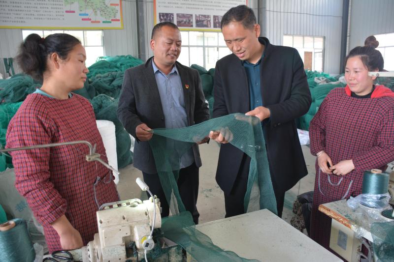 3月27日,商水縣平店鄉(xiāng)李崗村“商水縣龍巢網(wǎng)業(yè)公司”經(jīng)理羅國昌向村黨支部書記李金棋(左二)介紹漁網(wǎng)編織產(chǎn)業(yè)產(chǎn)銷帶貧情況。羅國昌和妻子劉清華2009年創(chuàng)辦漁網(wǎng)編織加工廠、2017年擴建新區(qū),現(xiàn)有3個大型生產(chǎn)車間庫房,發(fā)展30多個分廠、40多個聯(lián)系點,年產(chǎn)各種成品漁網(wǎng)500萬條,產(chǎn)品銷往國內(nèi)江蘇、安微、山東、河北、湖北等10多個省區(qū)和30多個沿海縣市水產(chǎn)公司,部分出口到俄羅斯及東南亞地區(qū),年創(chuàng)產(chǎn)值約1.6億元,精準幫扶225戶群眾脫貧,帶貧群眾有1萬余人。