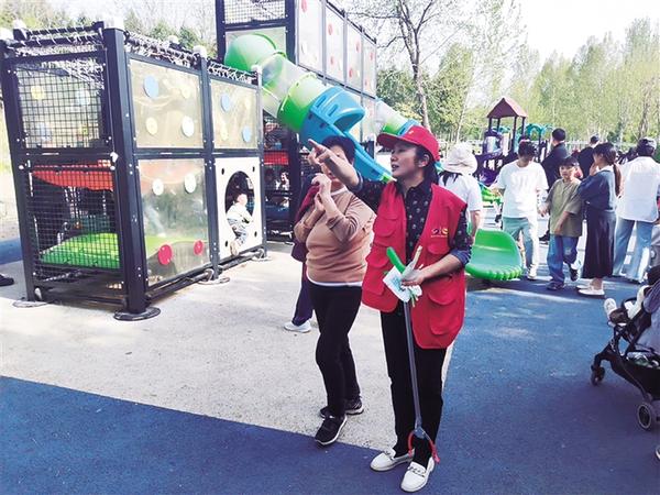 清明假期,周口植物園迎來(lái)客流高峰。周口市大鐵牛巾幗志愿者聯(lián)合會(huì)的志愿者始終堅(jiān)守崗位,為游客提供幫助與服務(wù)。