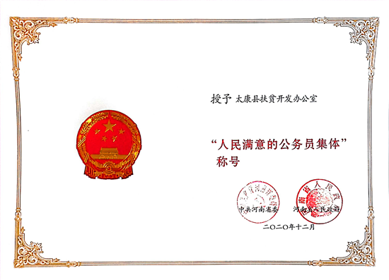 近日,省委、省政府對(duì)第四屆全省“人民滿意的公務(wù)員”和“人民滿意的公務(wù)員集體”進(jìn)行表彰,太康縣扶貧開發(fā)辦公室榮獲第四屆“人民滿意的公務(wù)員集體”。