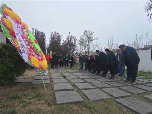 綠樹掩映,豫東特委紀(jì)念塔高高佇立,紀(jì)念碑前整齊地?cái)[放著鮮花。300余名來(lái)自老區(qū)的黨員干部、師生代表等在烈士胡曉初墓前靜立默哀、三鞠躬,傾訴哀思,深切緬懷革命先烈的不朽功績(jī)。