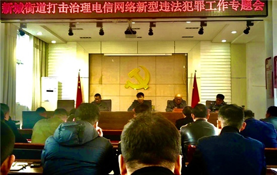 4月2日,新城派出所召開(kāi)打擊治理電信網(wǎng)絡(luò)新型犯罪工作專題會(huì),對(duì)辦事處各行政村、自然村干部進(jìn)行反詐知識(shí)培訓(xùn),積極發(fā)動(dòng)村干部走訪、宣傳“金鐘罩”。