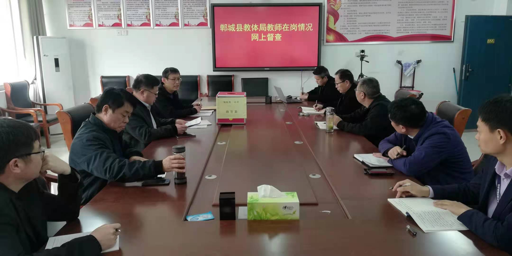 抽查時,紀(jì)檢組、督導(dǎo)室、辦公室、人事股、目標(biāo)辦等相關(guān)股室負(fù)責(zé)人和工作人員全部到崗到位,從抽簽箱中隨機(jī)抽出三個球號組成一組數(shù)字,然后從《隨機(jī)抽查檢查對象名錄庫》中確定被督查學(xué)校。網(wǎng)上督查人員接通被督查學(xué)校負(fù)責(zé)人或者教職工“企業(yè)微信”,通過視頻形式督查教師在崗信息公示情況、教師到崗情況、平時學(xué)校(中心校)對教師管理教育情況等,并同步與人事(師訓(xùn))教職工(特崗教師)信息系統(tǒng)比對。出差、請假等須當(dāng)場提供相關(guān)佐證材料。對疑似存在問題的,紀(jì)檢、人事部門當(dāng)即啟動線下復(fù)核程序。