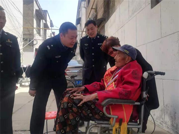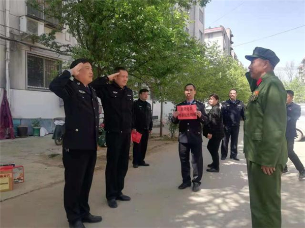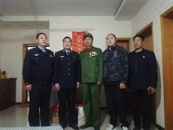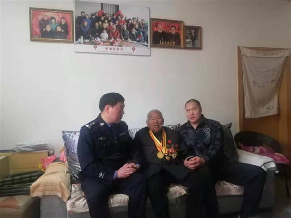 一大早,該所黨員民警身著戎裝,排著整齊的隊(duì)伍,分別前往荷花路派出所轄區(qū)的閆莊社區(qū)、荷花社區(qū)、前王營(yíng)等社區(qū),探望慰問(wèn)年逾花甲的抗戰(zhàn)老英雄,聆聽他們?cè)诳箵羟致缘膽?zhàn)斗歲月里浴血奮戰(zhàn)、不屈不撓的感人故事。在戰(zhàn)斗英雄尤洪亮家中,民警深切感受了那場(chǎng)保家衛(wèi)國(guó)反擊戰(zhàn)的慘烈,看到了新時(shí)代最可愛的人。