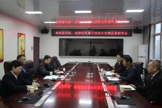 為進一步推動教育整頓工作,認(rèn)真落實省院、市院關(guān)于開展民事行政執(zhí)行法律監(jiān)督專項活動的要求,推動民事、行政檢察工作順利開展,解決人民群眾反應(yīng)強烈的執(zhí)行難、執(zhí)行亂等問題,4月20日下午,鄲城縣檢察院黨組書記、代檢察長陸智明和縣院黨組成員、副檢察長馬立強以及第四檢察部員額檢察官李平會同縣法院有關(guān)領(lǐng)導(dǎo)召開了民事行政執(zhí)行法律監(jiān)督聯(lián)席會??h法院黨組書記、院長王洪彬應(yīng)邀出席會議。