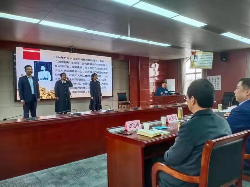 昨日,市人社局以情景局的形式在專題黨課上開展微黨課專題表演《共產(chǎn)黨員的信仰與忠誠》,專題演講了吉鴻昌同志的革命歷程?,F(xiàn)場配以吉鴻昌革命圖片,生動(dòng)形象展現(xiàn)了革命黨人為革命的信仰而獻(xiàn)身的英雄主義精神。尤其是表現(xiàn)了吉鴻昌遇刺被捕后,在獄中受盡酷刑,面對(duì)敵人的威逼利誘,始終堅(jiān)貞不屈。留下了“恨不抗日死,留作今日羞,國破尚如此,我何惜此頭”的千古絕唱,愛國精神激勵(lì)著我們永遠(yuǎn)奮勇前行。