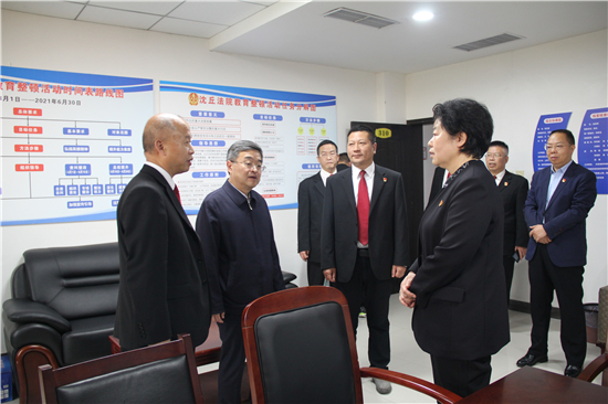 4月30日下午,市委常委、政法委書記路云到沈丘縣法院就隊伍教育整頓工作進(jìn)行專題調(diào)研指導(dǎo)。沈丘縣委書記皇甫立新,縣委常委、政法委書記段然陪同調(diào)研。
