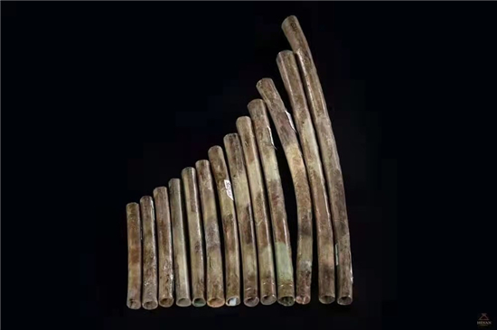令人驚喜的是,墓葬還出土了一批豐富的音樂考古資料,發(fā)現(xiàn)了我國目前最早的骨排簫。
