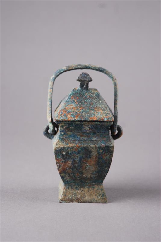 該墓藏酒器多是一個突出的特點,酒器類的器物則應(yīng)有盡有,既有飲酒用的爵、觚、角、觶,也有盛酒用的尊、觥、卣、罍。還有溫酒用的斝,取酒用的勺以及盛酒或酒水調(diào)和用的盉[hé]等。尤其是“長子口銅提梁卣”的發(fā)現(xiàn),成為古墓最有特色的隨葬品之一。該文物是西周早期文物,通高30厘米,口長直徑13.5厘米,短徑10.8厘米。器體橢圓,拱形扁提梁,兩端有環(huán)與器兩側(cè)半環(huán)狀耳套接。蓋內(nèi)壁和器內(nèi)底均有銘文“長子口”3字。出土時器內(nèi)有1000克左右的液體,經(jīng)過檢測得知所盛是酒。