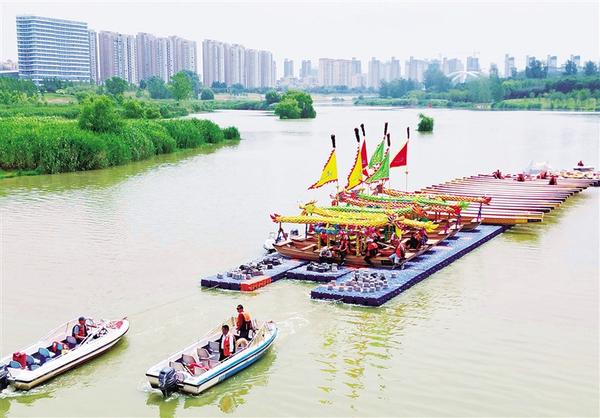 6月20日上午,周口市第八屆中華龍舟賽激烈進(jìn)行中。當(dāng)日,河南省第十一屆中華軒轅龍舟大賽暨周口市第八屆中華龍舟賽在周口市水上運(yùn)動中心開賽。賽前,水上拔河、翎船捕鴨等傳統(tǒng)表演讓觀眾大飽眼福。