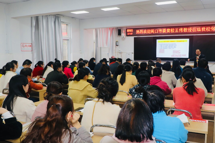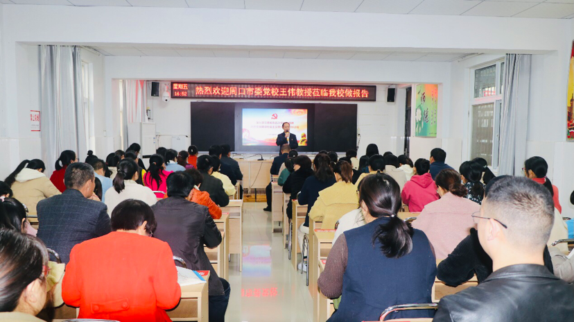 宣講會上,市委黨校宣講團講師王偉以“深入學(xué)習貫徹市五次黨代會精神、開啟全面建設(shè)社會主義現(xiàn)代化周口新征程”為主題,從充分認識市五次黨代會的重大意義、準確把握市五次黨代會的精神要義、全面落實市五次黨代會的目標任務(wù)三方面,詳盡解讀了市五次黨代會主旨報告的精神實質(zhì)和豐富內(nèi)涵。整場報告脈絡(luò)清晰、論述深刻、內(nèi)容豐富,既有深入淺出的理論闡述,又有結(jié)合我市發(fā)展的實例分析,更有教育實踐層面的對策思考,為該校教職工深入、完整、系統(tǒng)地領(lǐng)會市五次黨代會精神,有力推進貫徹落實黨代會精神提供了一把“金鑰匙”。