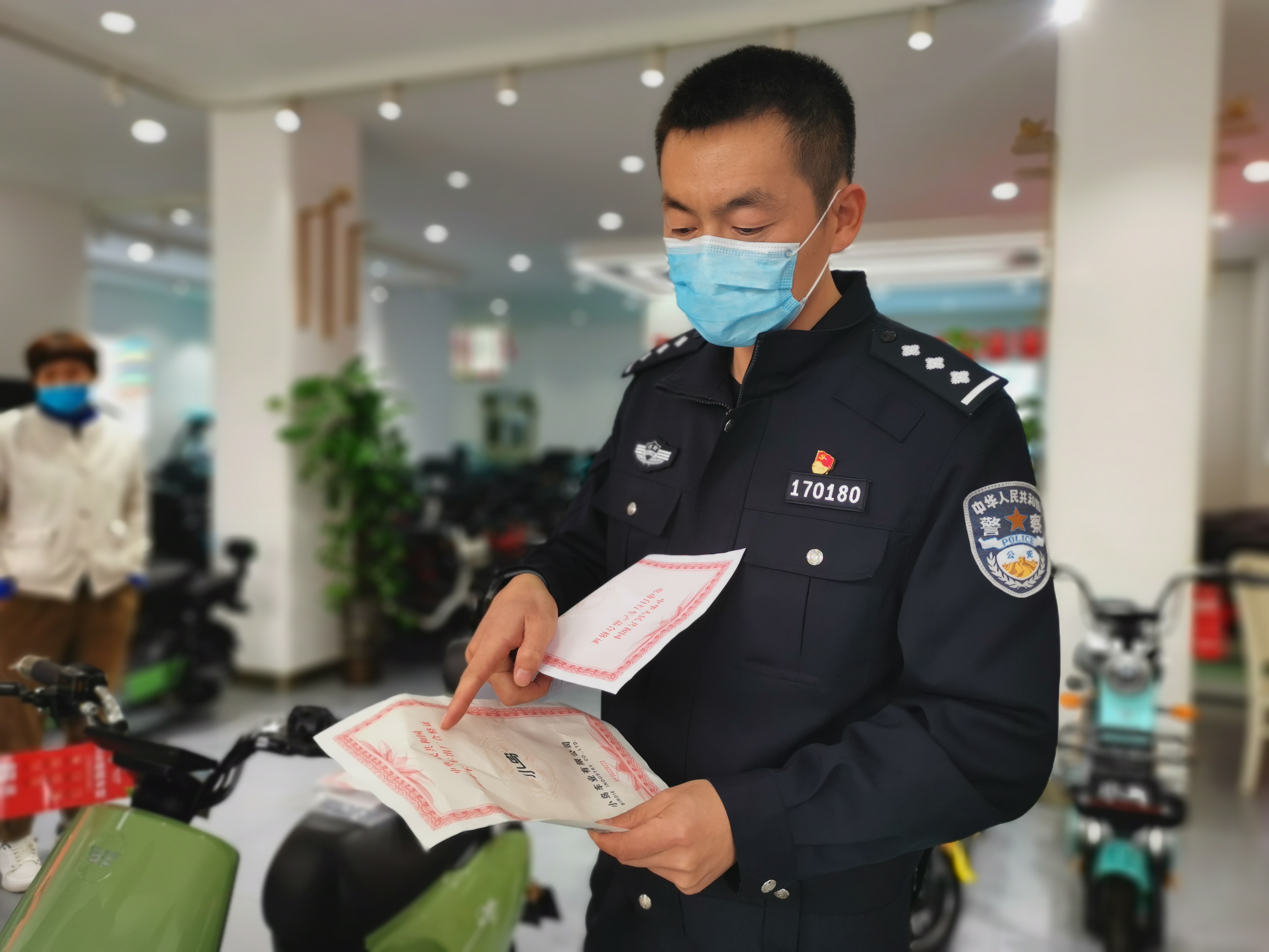民警查看電動自行車車架號