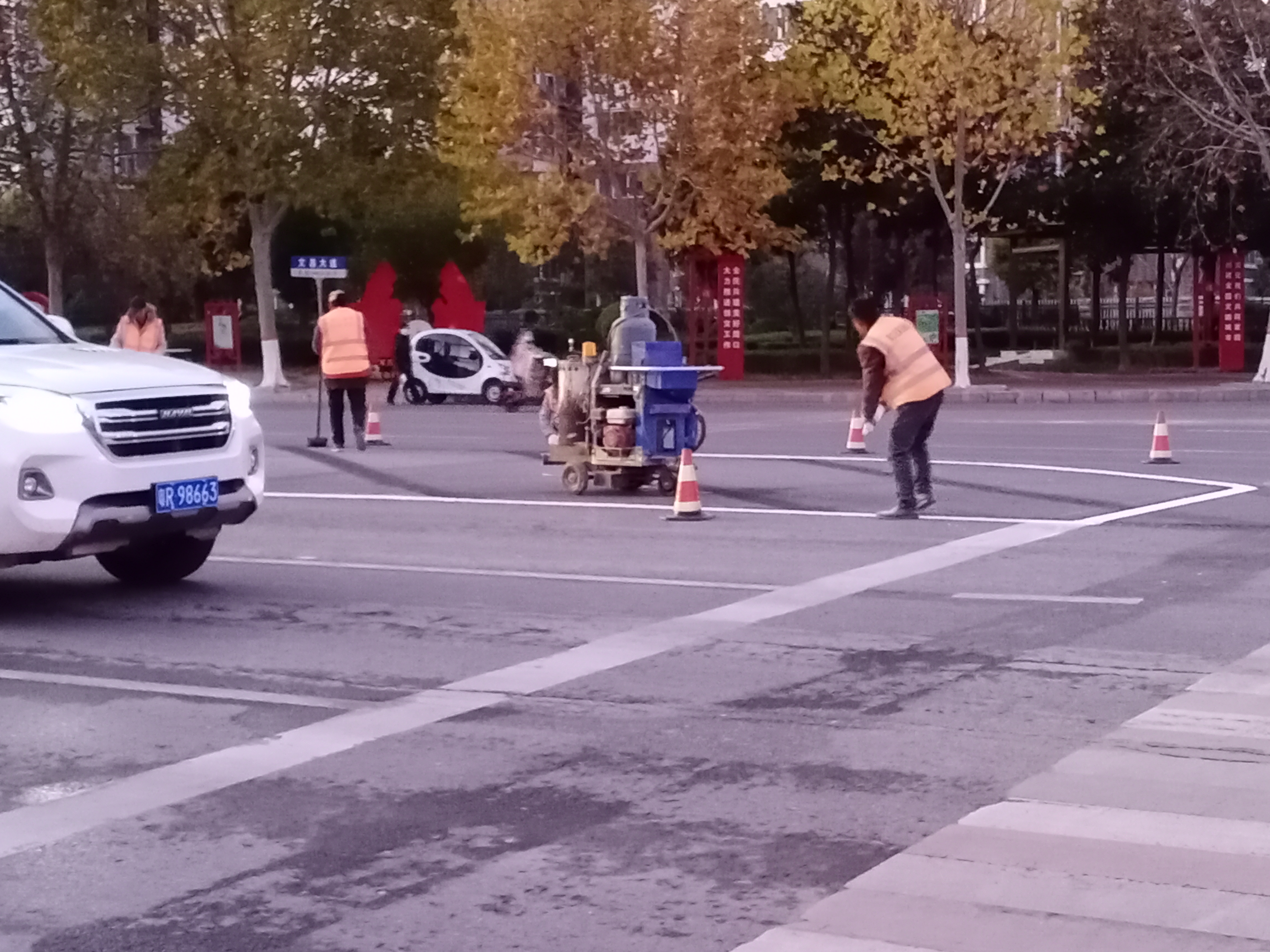 11月9日17時許,記者在周口市中心城區(qū)文昌大道與中原路交叉口看到,施工人員正在對交叉路口上的交通標(biāo)志線進行施劃,規(guī)范車輛和行人通行秩序,保證交通安全暢通有序,方便群眾出行。③3記者 張洪濤 攝