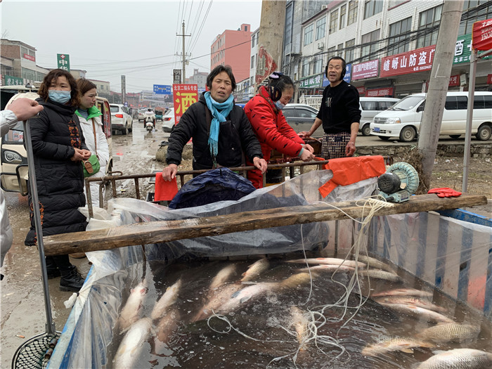 固墻鎮(zhèn)集市上活魚(yú)攤位生意火爆