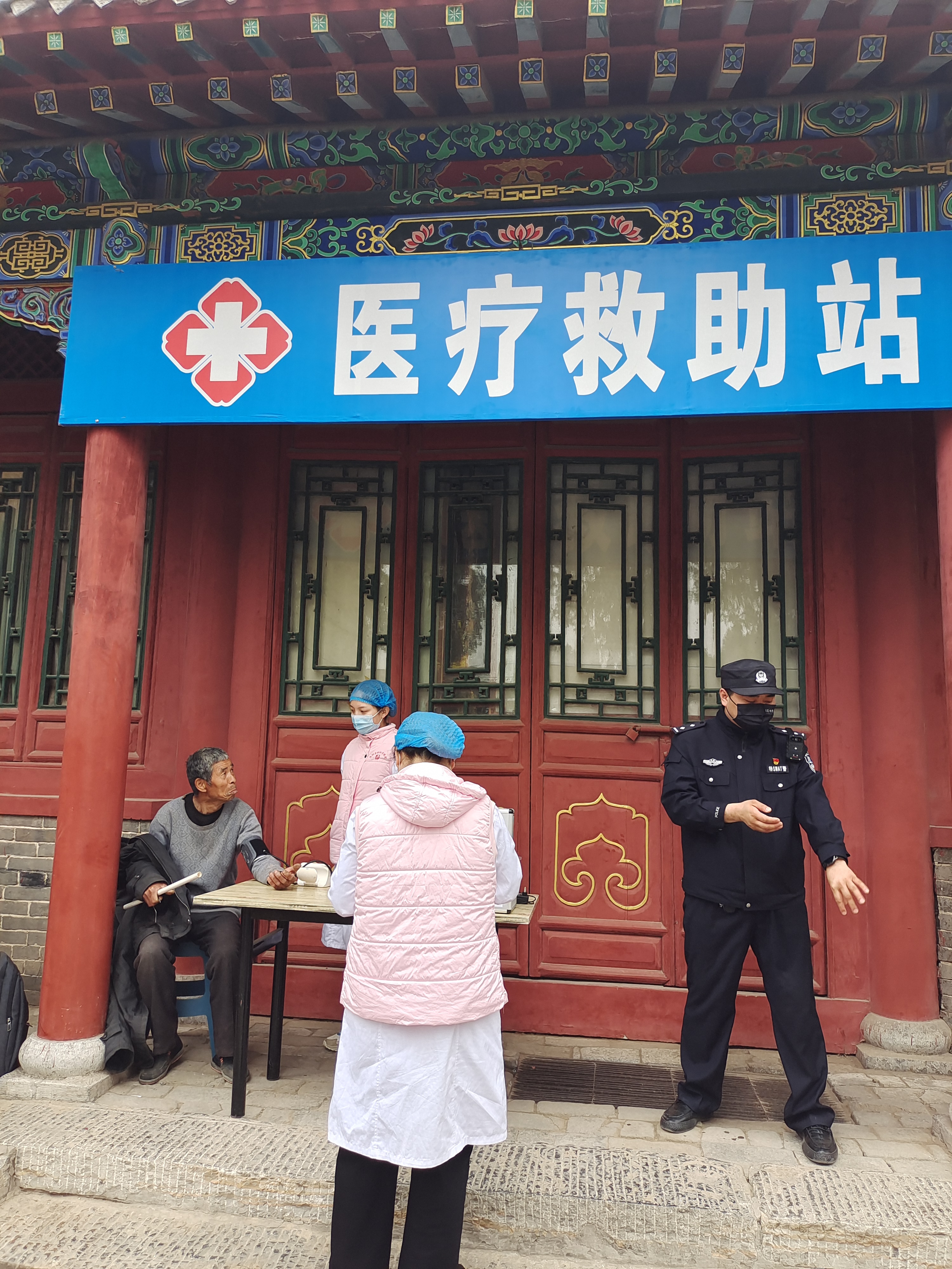 量血壓的姑娘叫蘇圓圓,據(jù)她介紹,全淮陽20多家醫(yī)院都派人在太昊陵各處設(shè)置“醫(yī)療救助站”,游客有任何不舒服可就近詢問觀察,各站都配有應(yīng)急藥箱,如有需要免費使用?!斑@段時間人流量大,大家一定要遵守各項安全措施,避免意外發(fā)生?!碧K圓圓說。