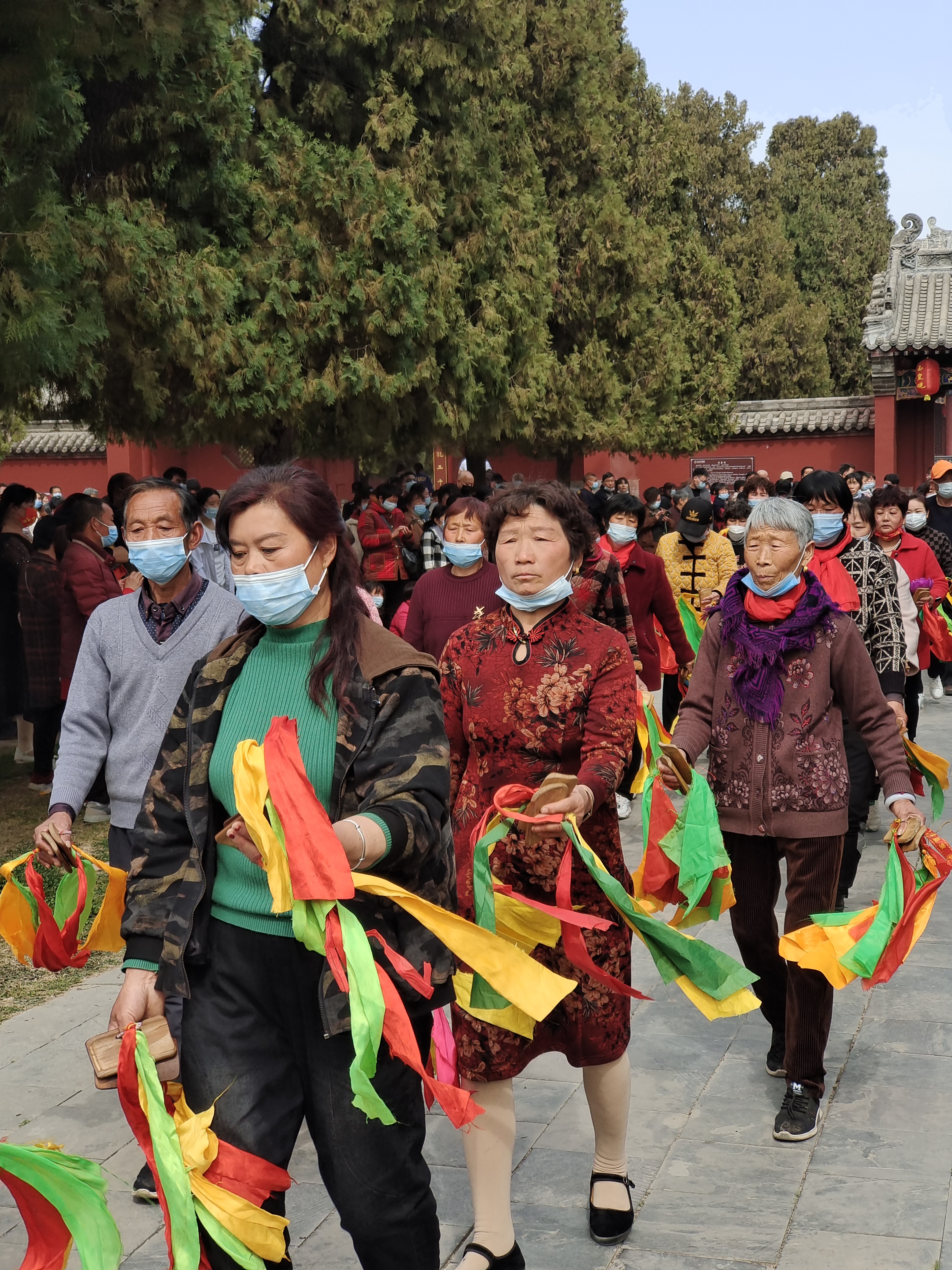 在疫情防控背景下,太昊陵中的子孫窯和岳飛觀暫時關(guān)閉。人們路過“子孫窯”時,會不自覺摸摸墻角;路過岳飛觀時,會雙手合十,帶孩子的會講岳飛的故事。變化之中,一些不變的照常進(jìn)行:往碑刻上貼硬幣,祈求好運;站在千年耳柏前,向人祖伏羲低聲訴說著心事;繞伏羲大墓一周,添一把土……在淮陽區(qū)各職能部門的努力下,這一古老又現(xiàn)代的盛會平穩(wěn)又精彩地運行著。②5