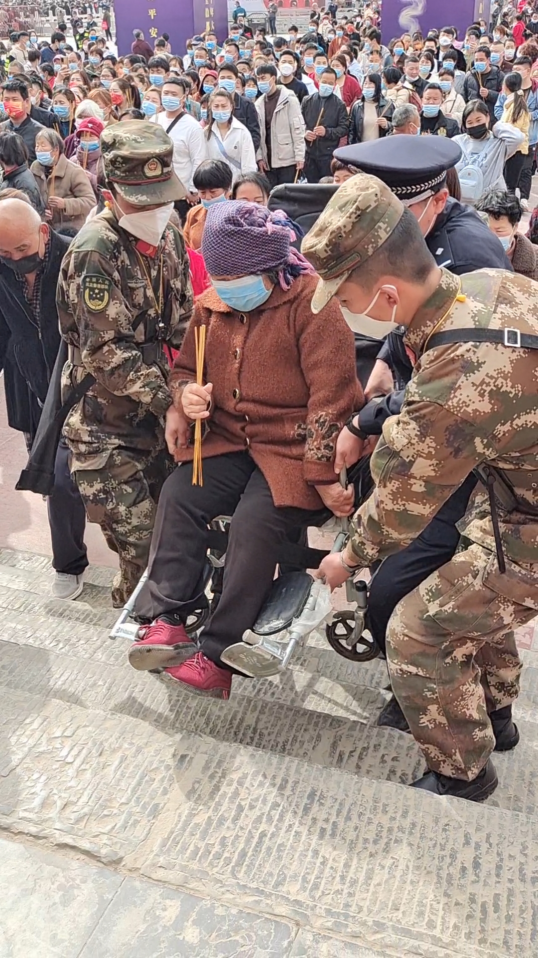 只要看到有腿腳不便的人上臺階不方便,附近的人民子弟兵立刻快步上前,扶上臺階。一位坐輪椅的老太太進(jìn)不去午朝門,3位武警官兵、一名警察以及熱心群眾齊心協(xié)力抬起輪椅,穩(wěn)穩(wěn)地把老太太抬進(jìn)門里。不等被幫助的人說聲“謝謝”,這些子弟兵就快速回到崗位,有人說他們戴著口罩看不到模樣,想知道他們的名字,他們說:“名字不重要,為人民服務(wù)最重要!”