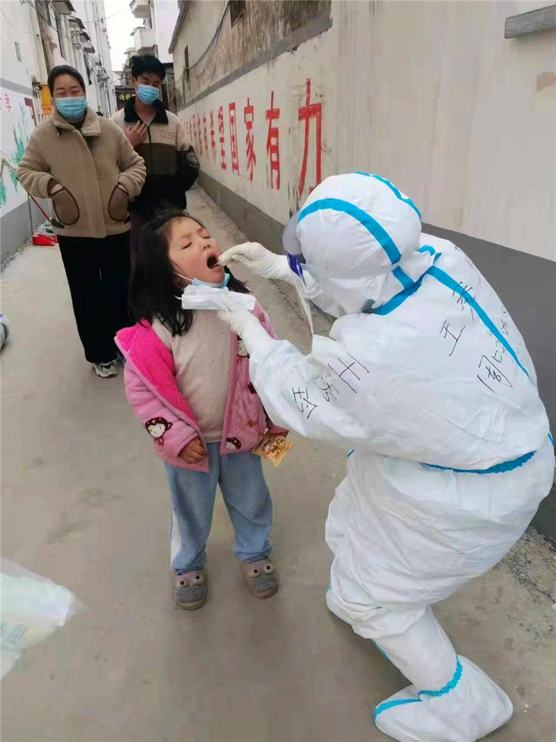 在太康戰(zhàn)“疫”中,第二醫(yī)療隊(duì)執(zhí)行的是封控區(qū)核酸采樣任務(wù)、應(yīng)急核酸采樣任務(wù),并兼做初篩陽性患者復(fù)核采樣工作。在這披星戴月的14天里,王秀玲每天直面病毒,不分晝夜,轉(zhuǎn)戰(zhàn)于20多個封控區(qū),穿梭在人人避之不及的地方。她和隊(duì)員們每天手?jǐn)y采樣包、身穿防護(hù)服,哪里有需要就到哪里去,以沖刺的姿勢拼出了核酸采樣的“加速度”。14天共入戶核酸采集樣本8萬余份,結(jié)合在太康工作經(jīng)驗(yàn),制定了《周口市中心醫(yī)院入戶核酸采集步驟和流程》,受到了上級領(lǐng)導(dǎo)的充分肯定,并被全市各地疫情防控指揮部推廣實(shí)施,為有效阻擊疫情蔓延貢獻(xiàn)了周口市中心醫(yī)院的智慧。③10