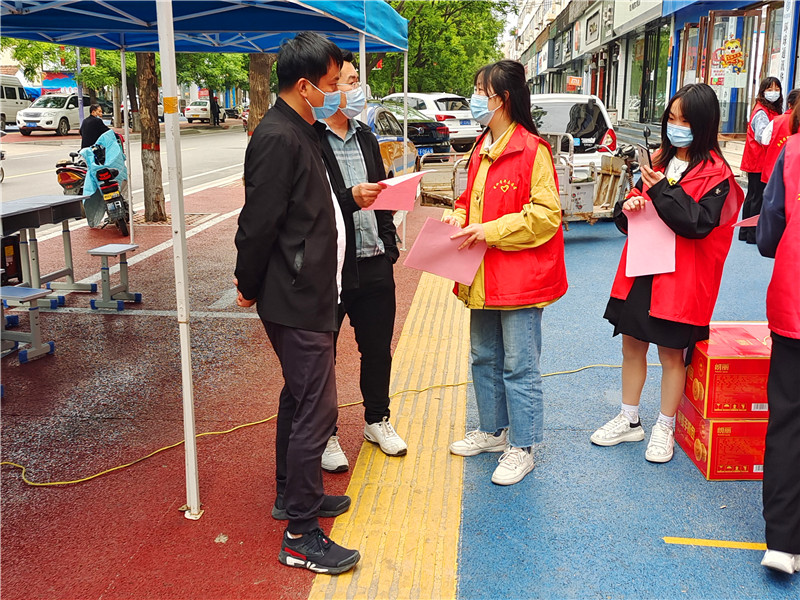 活動(dòng)中,志愿者向新城路、行政路、小吃街等路段沿街商鋪發(fā)放《致全縣商戶的一封信》,講解疫情防控最新形勢(shì)和最新政策,提醒沿街商鋪商家落實(shí)好掃“兩碼”、測體溫、出入登記等各項(xiàng)疫情防控措施,引導(dǎo)群眾養(yǎng)成正確佩戴口罩、保持一米線距離等健康防護(hù)習(xí)慣,提醒人員不扎堆不聚集, 用志愿服務(wù)匯聚抗疫力量,筑牢群眾健康屏障。
