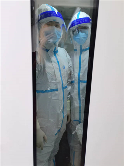 如果說有一座城叫眾志成城,那必定有一種力量叫檢驗擔(dān)當(dāng)。在幾十平方米的實驗室內(nèi),環(huán)境消毒、物資準(zhǔn)備、接收標(biāo)本、編號錄入、核酸提取、環(huán)境消殺、基因擴增、結(jié)果研判、高壓消毒、信息上報、表格填寫、室內(nèi)質(zhì)控、室間質(zhì)評……每一個環(huán)節(jié)都需要嚴(yán)格規(guī)范操作,不放過任何一個細(xì)節(jié)、不能有一絲毫紕漏。在核酸檢測過程中,王健嚴(yán)格遵守生物安全制度,標(biāo)準(zhǔn)穿戴三級防護裝備,帽子、N95口罩、防護服、護目鏡、乳膠手套、隔離衣……一個也不能少。為以最快速度出具檢測結(jié)果,確保實驗室安全,王健在低于標(biāo)準(zhǔn)大氣壓的負(fù)壓狀態(tài)下進行工作。三級防護和大量檢測工作時常會使他出現(xiàn)汗流浹背、呼吸不暢、頭痛等缺氧癥狀,對體力是一個極大挑戰(zhàn)。但他總能克服這些困難,不辜負(fù)黨和人民的期望,在抗擊新冠肺炎疫情的戰(zhàn)場上勇?lián)姑_鋒在前,為人民群眾筑起生命健康的第一道防線!