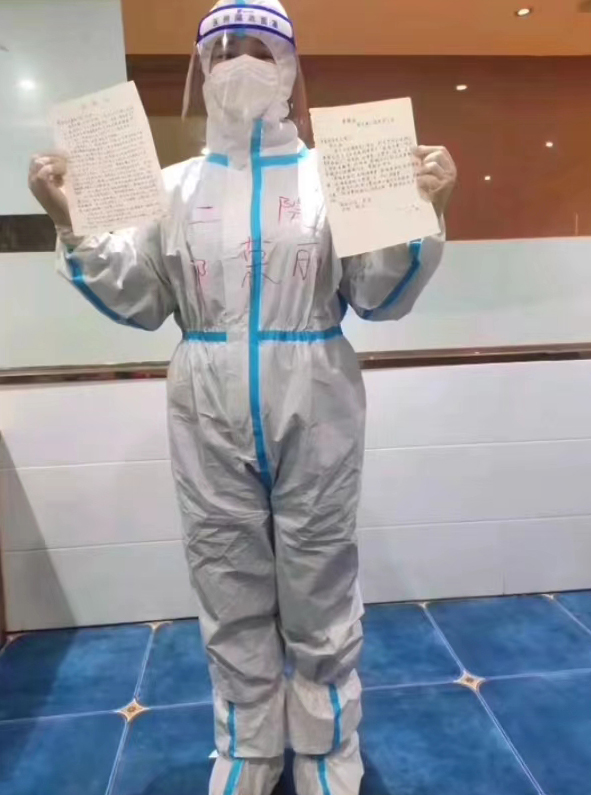 2022年1月太康縣出現(xiàn)確診病例密切接觸者,根據(jù)防控要求,這次需要隔離的人員多為太康第三中學的學生,接到通知后的郭榮麗再次投入工作。她看到被隔離的孩子在緊張、恐懼的情緒中還在學習,她既心痛又欣慰。郭榮麗的兒子和被隔離的孩子同歲,母親了解孩子,她每天都會和這些孩子聊天,了解孩子的心理狀況,解除孩子的恐懼心理,很快孩子們就和她熟悉起來。整個隔離期間,這些孩子有心里話也會告訴郭榮麗。觀察結束后,孩子們還給她和醫(yī)護團隊寫了一封感謝信,信中說“我想看看您摘掉口罩后的樣子,我想那是天使的模樣”。