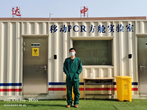他積極主動參與各項工作,在太康方艙實驗室的那段時間,陸續(xù)來了兩批新同事對機(jī)器及操作流程不熟悉,他積極主動幫助他們以最快的速度適應(yīng)新環(huán)境。由于方艙特殊的工作環(huán)境(負(fù)壓條件),他們必須穿著厚厚的防護(hù)服,忍著負(fù)壓帶來的身體不適,在艙內(nèi)一忙就是六七個小時,出艙時身上一身汗,面部被口罩勒出一道道印痕。由于每天檢測任務(wù)繁重,工作量大,有一部分同事心情低落。他會安慰大家,用他樂觀的性格影響著周邊的同事。檢驗人并不直接接觸患者,但是他們的檢測結(jié)果報告是鑒別疫情最重要的診斷依據(jù),盡快盡早地提供準(zhǔn)確的檢驗結(jié)果報告是至關(guān)重要的。惟其艱難方顯勇毅,惟其篤行方顯珍貴。劉歡是很多檢驗人員的縮影,在這個平凡的崗位上,他們默默奉獻(xiàn)、任勞任怨、辛勤耕耘、艱苦奮斗。雖然他們沒有豪言壯語,沒有驚天動地的業(yè)績,但正是他們毫不退縮、勇?lián)?zé)任、踐行使命,才保障了一方百姓的健康安全。③9
